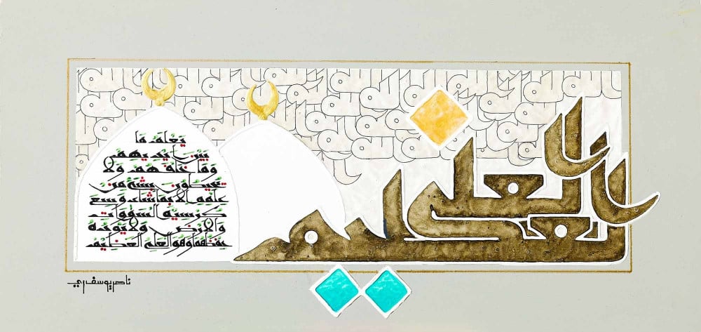 لوحة أصلية من عمل ناصر يوسف زاي - رسام باكستاني - مواد مختلفة على لوحة.