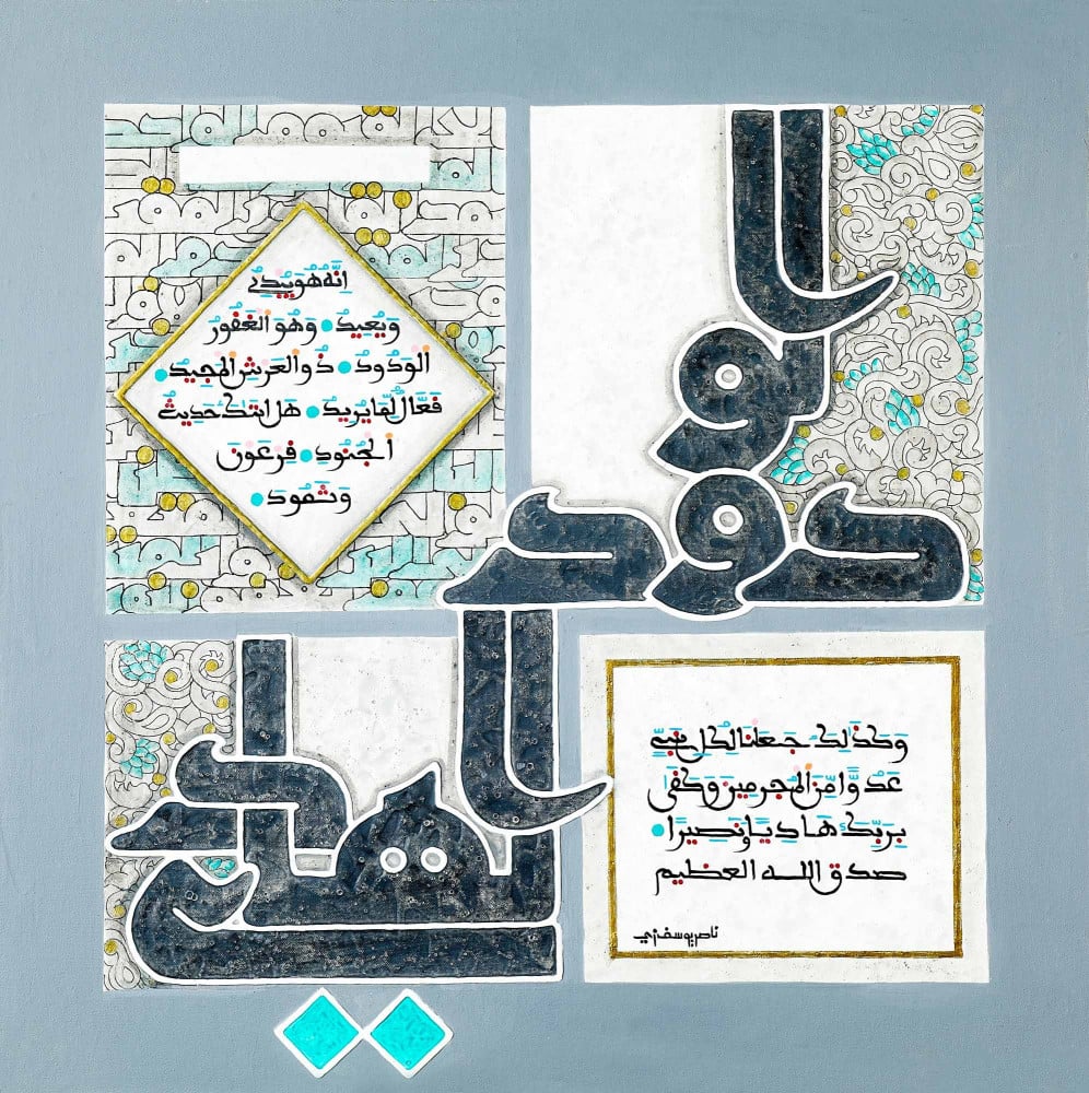 لوحة أصلية من عمل ناصر يوسف زاي - رسام باكستاني - مواد مختلفة على لوحة.
