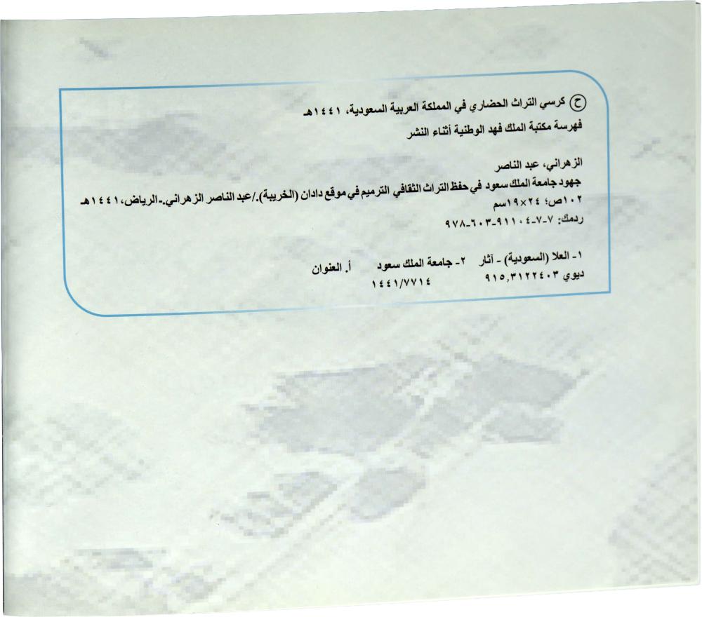 جهود جامعة الملك سعود في حفظ التراث الثقافي - الترميم في موقع ديدان (الخريبة) - أ.د. عبد الناصر بن عبد الرحمن الزهراني - أ.د. محسن محمد صالح محمد