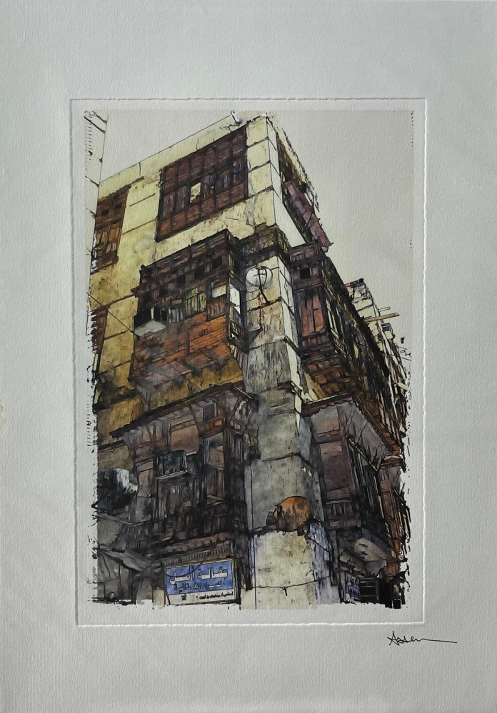 لوحة فنية فوتوغرافية أصلية - مطبوعة موقعة من عمل عاصم الصبان - فنان سعودي من الرواد.