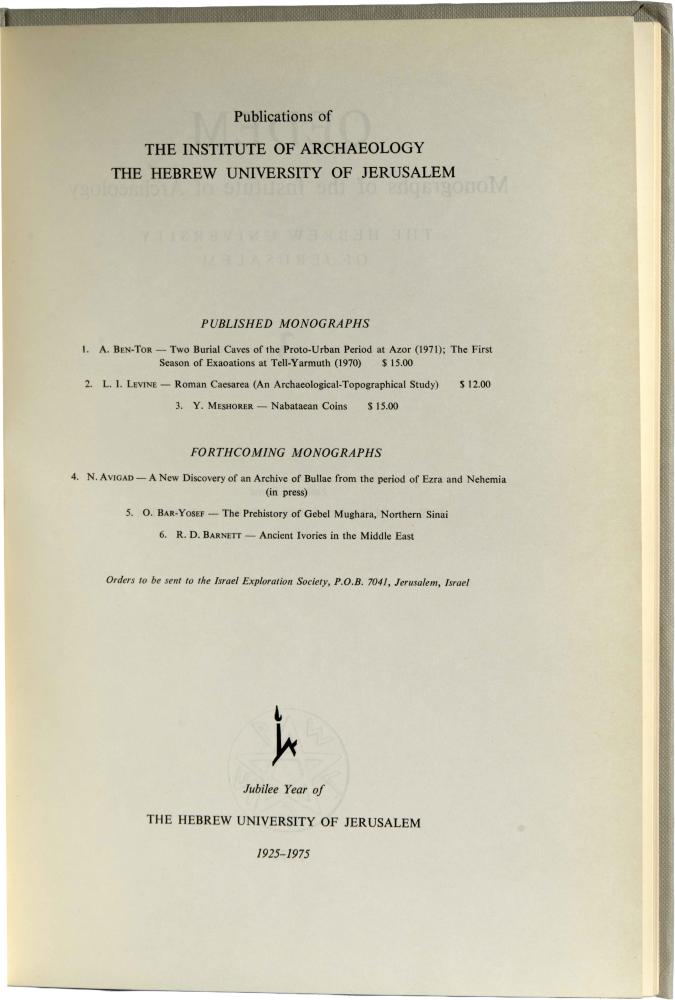 Published by Monographs of the Institute of Archaeology - The Hebrew University of Jerusalem - 1975